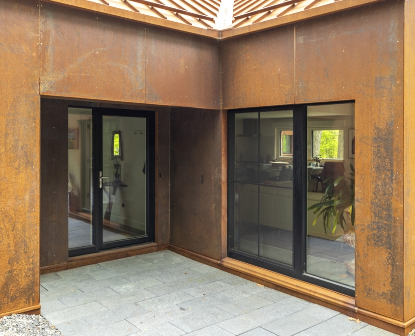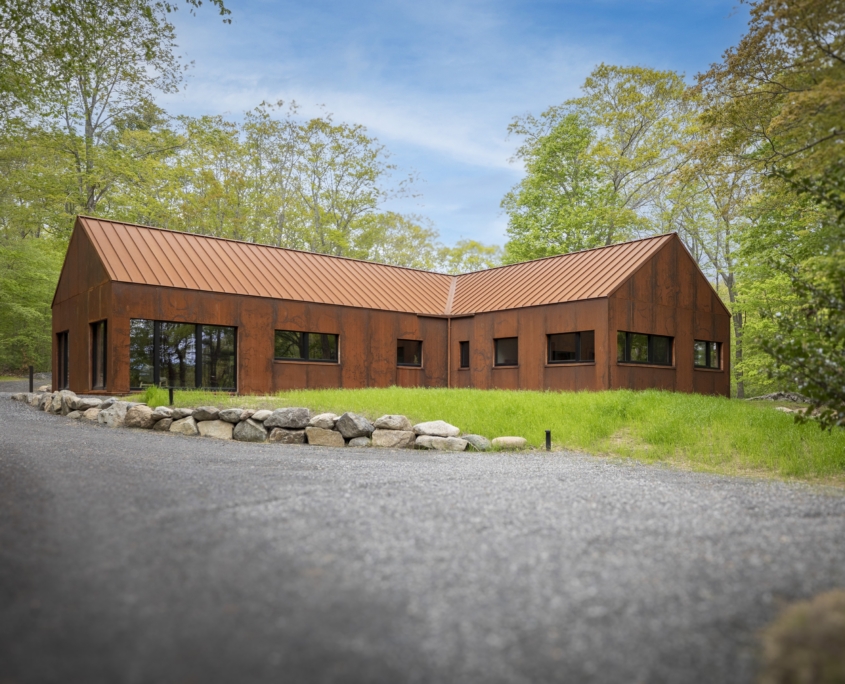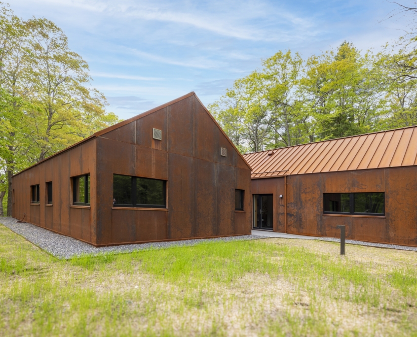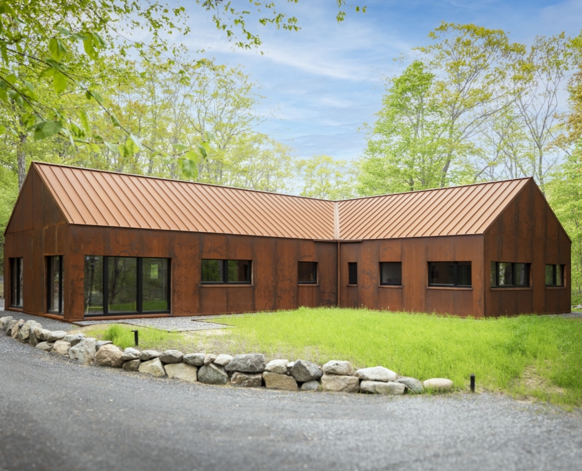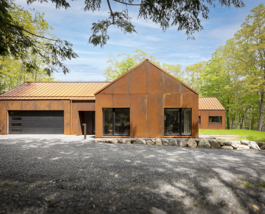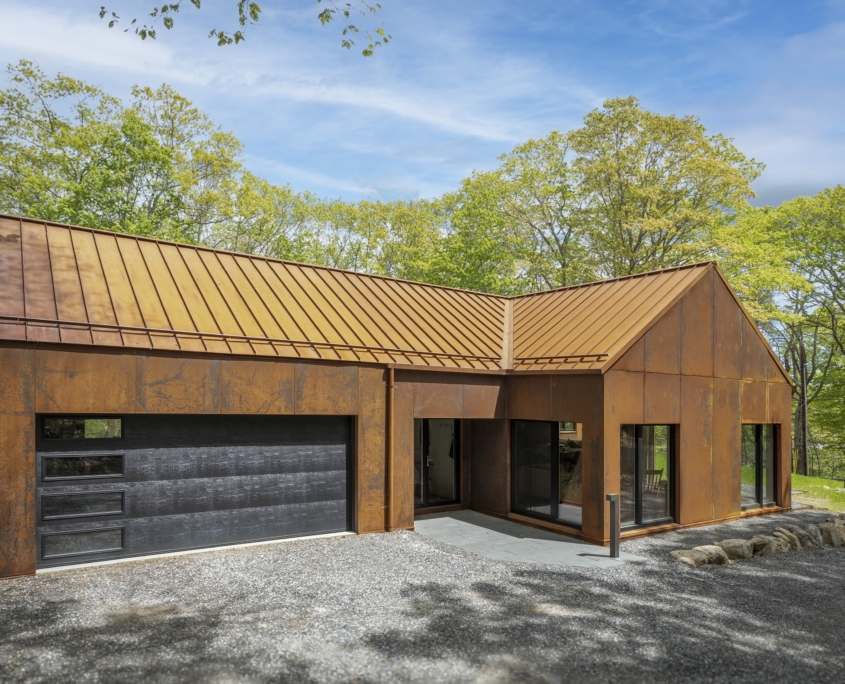 Sheet Metal Supply, a leading North American metal fabricator and supplier, delivered 11-gauge Corten prefabricated panels for the walls of the home and 22-gauge Corten A606 standing seam panels for the roofing.